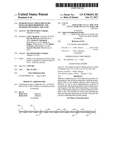 Methods of enhancing one or more physical properties of a thermoplastic film include incrementally stretching thermoplastic films in the machine direction and/or transverse direction. In one or more implementations, methods of incrementally stretching thermoplastic films include reducing the gauge of the films while maintaining or increasing a ratio of the machine direction to transverse direction resistance to tear. The methods can involve cold stretching the films and imparting rib patterns into the film. The linear ribs can have alternating thick and thin gauges.