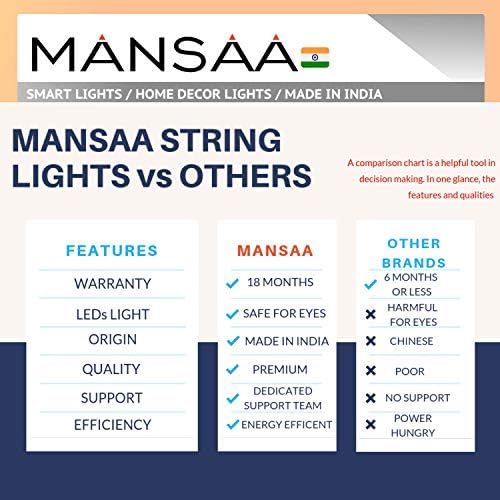 MANSAA GUARANTEE: Long lifespan and guarantee, Bulb life is rated at 50,000 hours for long-term lighting. At Mansaa, we guarantee the strength and durability of our products by offering 12-month warranty on fairy string lights, worry-free replacement or a full refund.