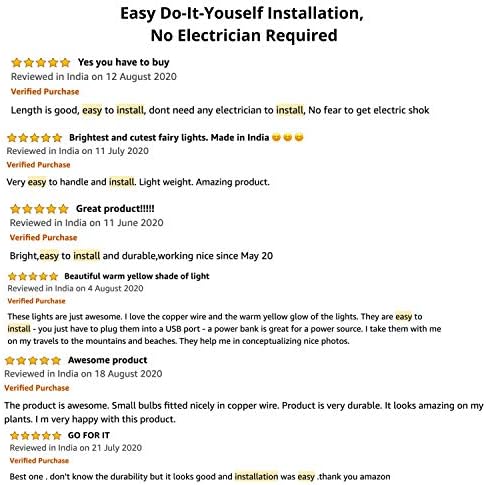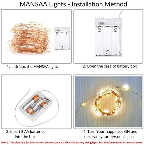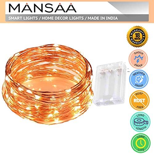 COST EFFECTIVE & ENERGY EFFICIENT : Mansaa starry fairy lights adapt with premium quality LEDs and casting with durable golden/silver copper wires. Battery powered for light up or twinkle. Low power consumption with bright colors. Low voltage and energy efficient. ( No need of any USB, Switches etc, Just put the battery and start shining). High quality 0.4mm copper wire and LEDs which is durable and flexible and can be easily bended and shaped around plants, signs, furniture and something else; the copper wire lights have been wound around a wire coil so that it is easy to untangle and storage for next use.
