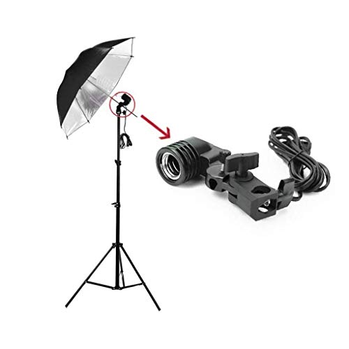 Features: Brand new and high quality Model : single-lamp holder socket types set of 2 pcs: passport photography lights The swivel adapter lets you have full control over your flash or slave positioning Mount your slave to the swivel adapter and then set it on any of your standard mount light stands The adapter swivels in all directions so you get the light where you need even with difficult angles Rotatable bracket with E27 socket Switch button on the socket Allow to control flash in all directions Screw for easy fastening 3M cable Flash umbrella socket accepts 9mm umbrella shafts With reflective umbrella socket, to plug in reflective umbrella or soft light umbrella Perfect for holding your photography lighting, photo umbrellas, slave flash or light bulbs