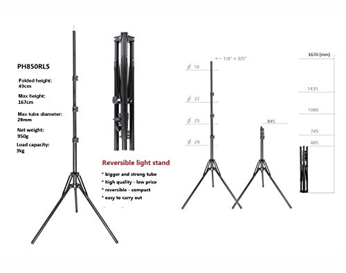 Photron Stedy 850 Reversible Light stand is a very useful accessory for photography. This can mount many different accessories such as flash units, light lamps, reflectors, umbrellas, and so on, which makes it very easy to layout the photographed scene. It has a black satin finish look to prevent any unwanted reflections. This Light stand is lightweight but robust and durable enough.
