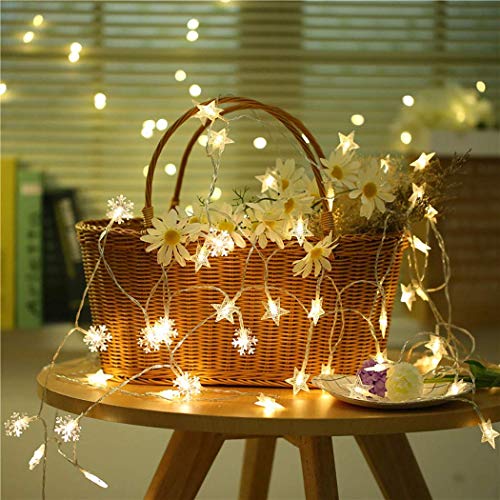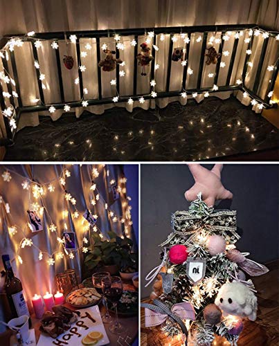 SNOWFLAKE SHAPE LIGHT Unique Snowflake Shape Light, bring you colorful christmas atmosphere, unique christmas light for outdoor garden and indoor room decor. VIVID SNOWFLAKE LIGHTS 20 independent snowflake. Each snowflake contains an LED that emits a warm white light, LED light and snowflake are separable. It will brighten up the dark corner for happiness atmosphere inside or outside. CHRISTMAS DECORATIONS Snowflake LED string light. The little snowflake lights are bright yellow and starry, perfect for positioning lights to any decorative or holiday project. FLEXIBLE AND BENDABLE The copper wire is flexible and bendable, which means that the string lights can be bent to any shape you want. Best choice for Christmas, birthday, party, wedding, garden and more occasions. safety and easy to place it to anywhere lighting required, amazing led christmas light string for tree, bedroom or patio. AODORABLE AND EXQUISITE The lights are truly adorable and add an exquisite contribution to your home decoration. Say, you can hang it to your desks, dressers, beds, cabinets, bathrooms, patios and many more places to create a soft romantic atmosphere.