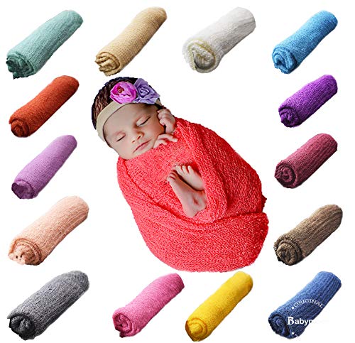 LUXURY STRETCH MATERIAL : 100% Rayon and Measures 19″ Wide by 60″ Long.Baby photography prop stretch cheesecloth wraps Long enough to wrap your little nursling, Photo blanket props very suitable for 0-6 months babies.
