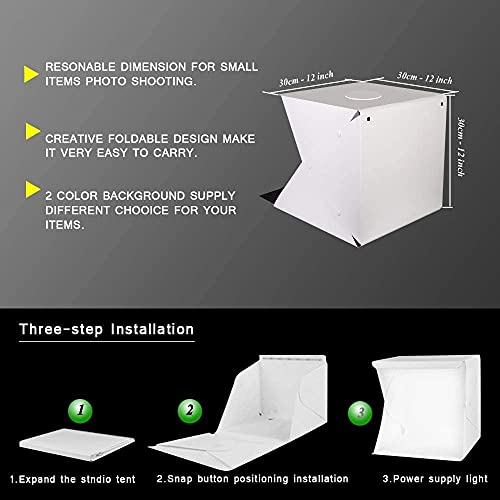 All the installation can be finished with only button, without complicated installation process. Photography light box provides front horizontal shooting windows, meets your different shooting need to get high-quality professional pictures. Portable, Foldable, Quick Assemble: Very easy to set-up your own photo studio in short time, quick collapse into a thin, portable piece when not use. Upgraded snap button provide more powerful stability.