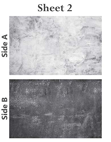 2 Sheets Flat Lay Photography Backgrounds. Each sheet has 2 sides and different design on each side. Hence you get total 4 designs in a pack. Dimension of each sheet is 56*88 Cm. Material – 300 GSM art paper with waterproof printing. The sheets are printed in high tech industrial printers and gives very realistic look. The sheets can be cleaned with damp cloth.