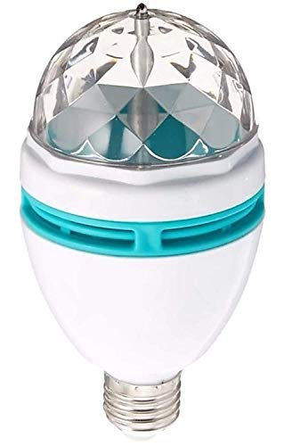 360 Degree LED Crystal Lotus Rotating Bulb Magic Disco LED Light Lightweight and easy to install LED lamp Superior performance and reliable quality Long life up to 20000 hrs Energy saving No UV Rays Emits multicolor RGB light in crystal ball effect Rotates automatically Light emitter: 3*1W LED Power: 85V-260V Size: 7.5 x 7.5 x 14.5 cm; Weight: 90g Ideal for home, party, clubs, bars, lamps etc.