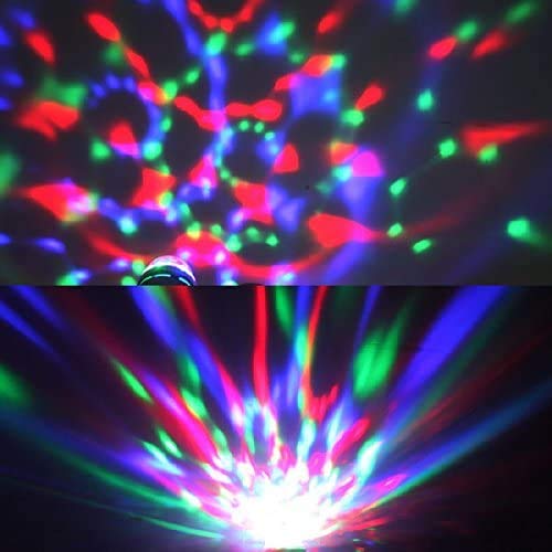 Multi-Color Lights Change Automatically. Has a slight whirring sound of motor.Ideal for home party’s ,disco, Bar’s ,Club’s ,stage and even children’s rooms. 3-1W LED